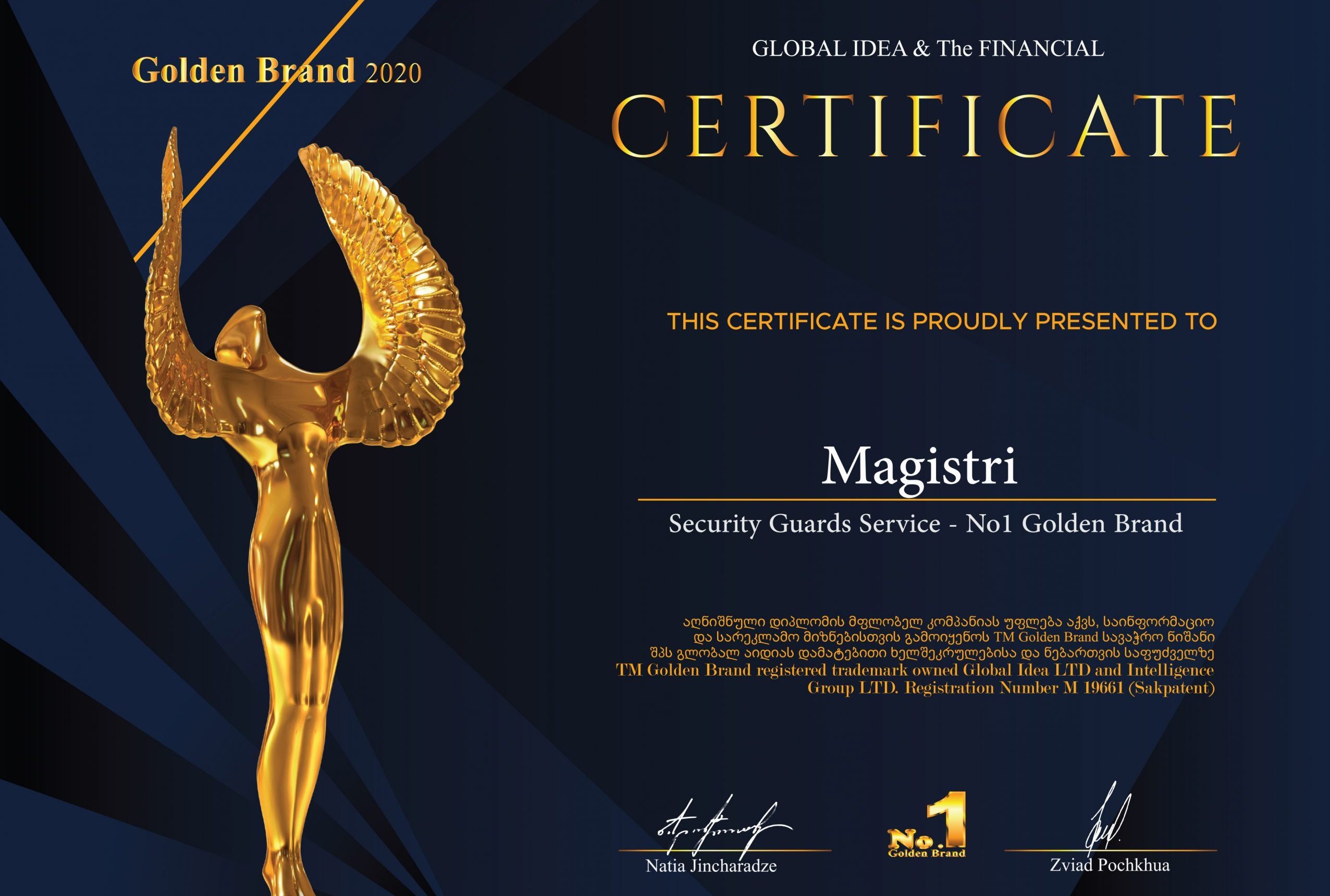 სიხარულით გაცნობებთ, რომ დაცვის კომპანია მაგისტრი რიგით მეორედ დაჯილდოვდა ნომერ პირველი ოქროს ბრენდის სტატუსით!