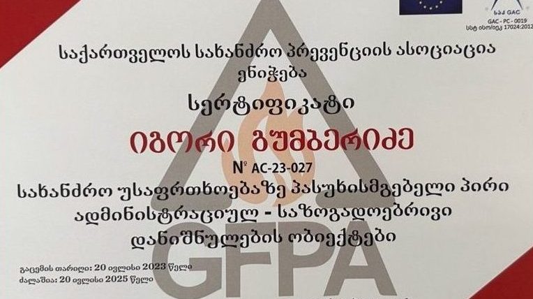 ტექნიკური ჯგუფის თანამშრომლებს საქართველოს სახანძრო პრევენციის ასოციაციის მიერ მიენიჭათ სახელმწიფო აკრედიტირებული სერთიფიკატი